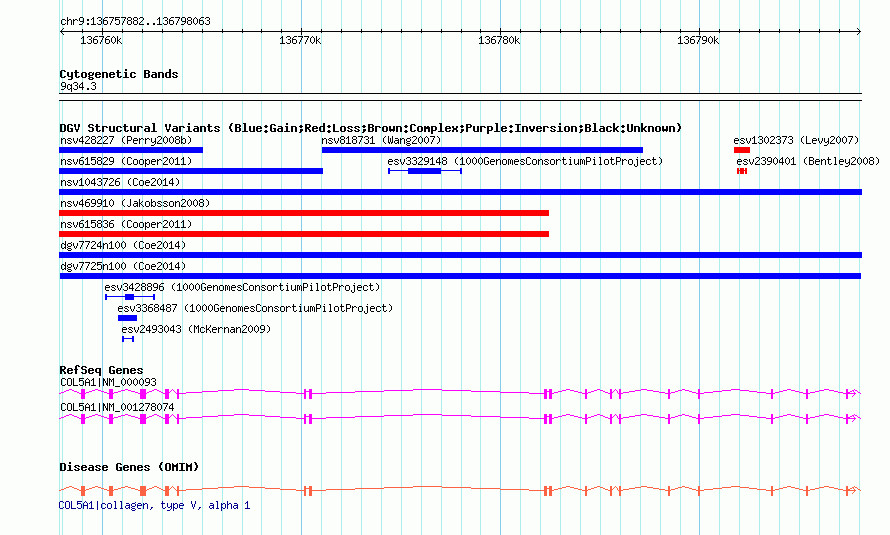 Variant DetailsVariant: dgv7725n100| Internal ID | 22793812 | | Landmark | | | Location Information | | | Cytoband | 9q34.3 | | Allele length | | Assembly | Allele length | | hg38 | 40182 | | hg19 | 40182 | | hg18 | 40182 |