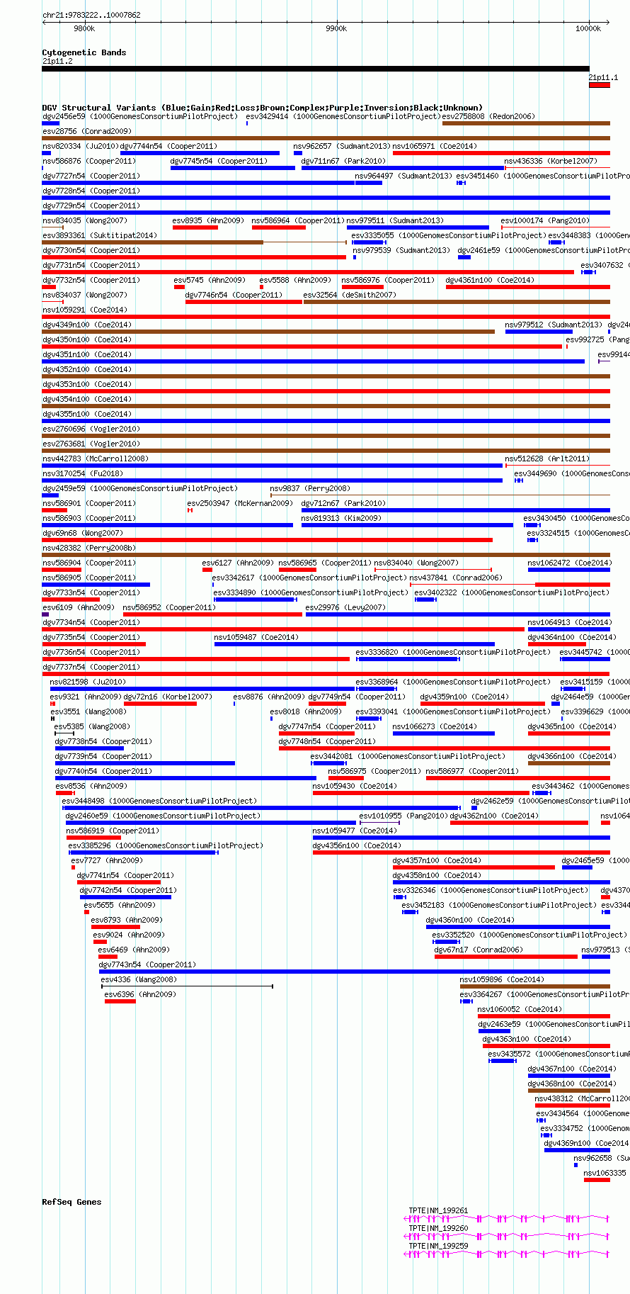 Variant DetailsVariant: dgv7737n54| Internal ID | 22775632 | | Landmark | | | Location Information | | | Cytoband | 21p11.1 | | Allele length | | Assembly | Allele length | | hg38 | 224641 | | hg19 | 224641 | | hg18 | 224641 |