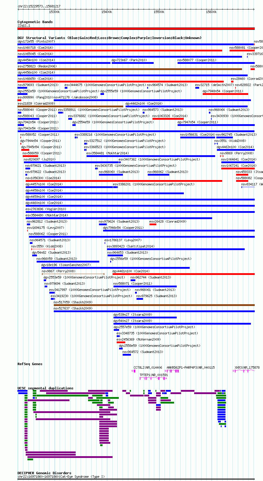 Variant DetailsVariant: dgv7943n54| Internal ID | 20141367 | | Landmark | | | Location Information | | | Cytoband | 22q11.1 | | Allele length | | Assembly | Allele length | | hg38 | 451417 | | hg19 | 451645 | | hg18 | 451645 |