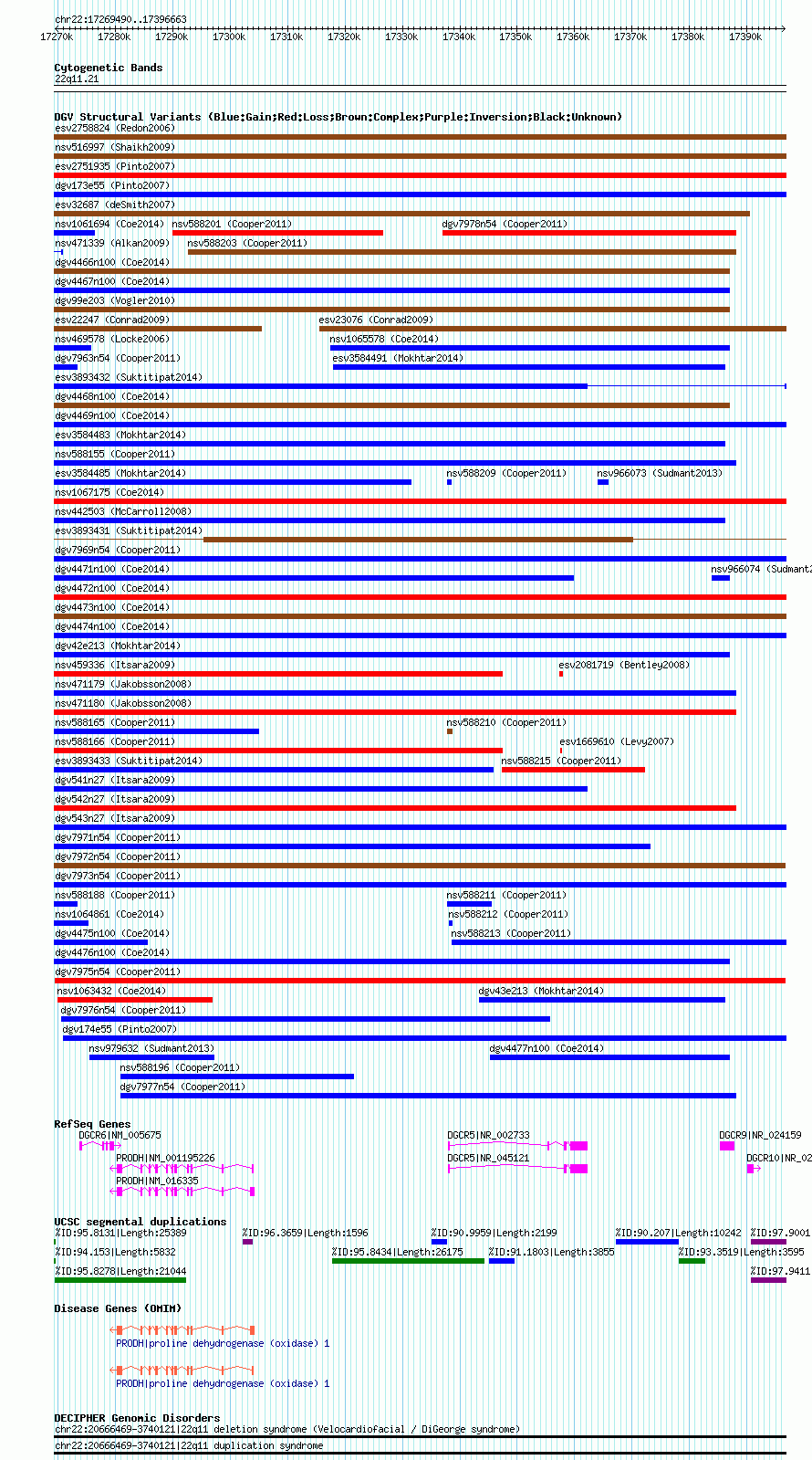 | Variant Type | CNV loss | Copy Number | | Allele State | | Allele Origin | | Probe Count | | Validation Flag | | Merged Status | M | Merged Variants | | Supporting Variants | nsv588207, nsv588205, nsv588200, nsv588192, nsv588195, nsv588194, nsv588189 | Samples | HGDP01418 | Known Genes | DGCR10, DGCR5, DGCR6, DGCR9, PRODH | Method | SNP array | Analysis | Illumina SNP array copy number analysis | Platform | Not reported | Comments | | Reference | Cooper_et_al_2011 | Pubmed ID | 21841781 | Accession Number(s) | dgv7975n54