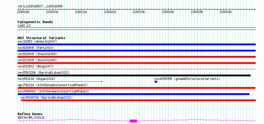 Variant DetailsVariant: dgv79e214| Internal ID | 22755973 | | Landmark | | | Location Information | | | Cytoband | 1q42.13 | | Allele length | | Assembly | Allele length | | hg38 | 8192 | | hg19 | 8192 |