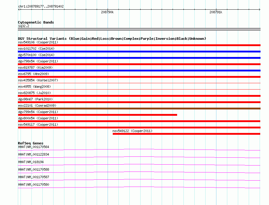 Variant DetailsVariant: dgv800n54| Internal ID | 22768695 | | Landmark | | | Location Information | | | Cytoband | 1q32.2 | | Allele length | | Assembly | Allele length | | hg38 | 2226 | | hg19 | 2226 | | hg18 | 2226 |