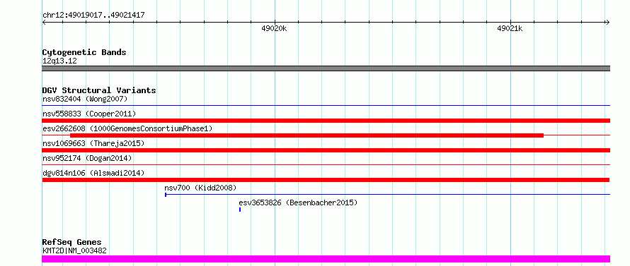 Variant DetailsVariant: dgv814n106| Internal ID | 20160171 | | Landmark | | | Location Information | | | Cytoband | 12q13.12 | | Allele length | | Assembly | Allele length | | hg38 | 2401 | | hg19 | 2401 |