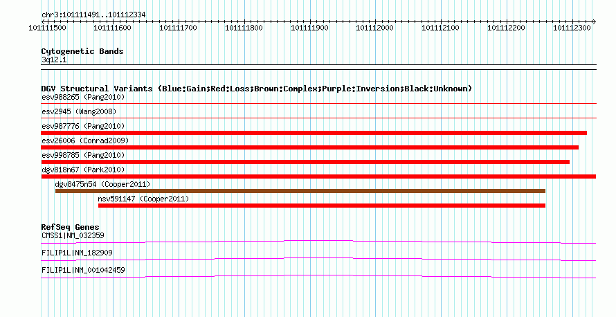 Variant DetailsVariant: dgv818n67 | Internal ID | 22781801 | | Landmark | | | Location Information | | | Cytoband | 3q12.1 | | Allele length | | Assembly | Allele length | | hg38 | 844 | | hg19 | 844 | | hg18 | 844 |