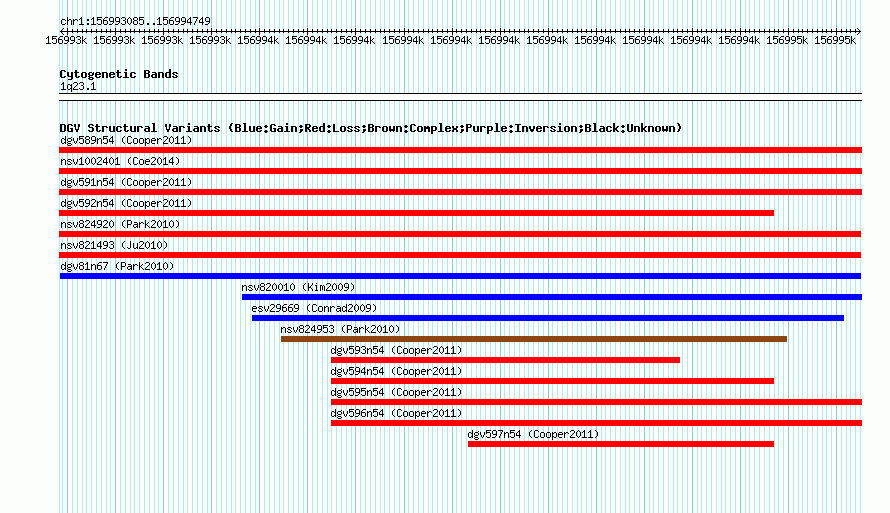 Variant DetailsVariant: dgv81n67 | Internal ID | 22781064 | | Landmark | | | Location Information | | | Cytoband | 1q23.1 | | Allele length | | Assembly | Allele length | | hg38 | 1665 | | hg19 | 1665 | | hg18 | 1665 |