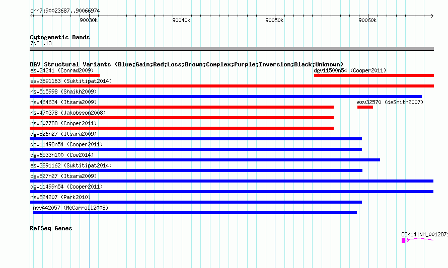 Variant DetailsVariant: dgv827n27| Internal ID | 22767556 | | Landmark | | | Location Information | | | Cytoband | 7q21.13 | | Allele length | | Assembly | Allele length | | hg38 | 43288 | | hg19 | 43288 | | hg18 | 43288 | | hg17 | 43288 |