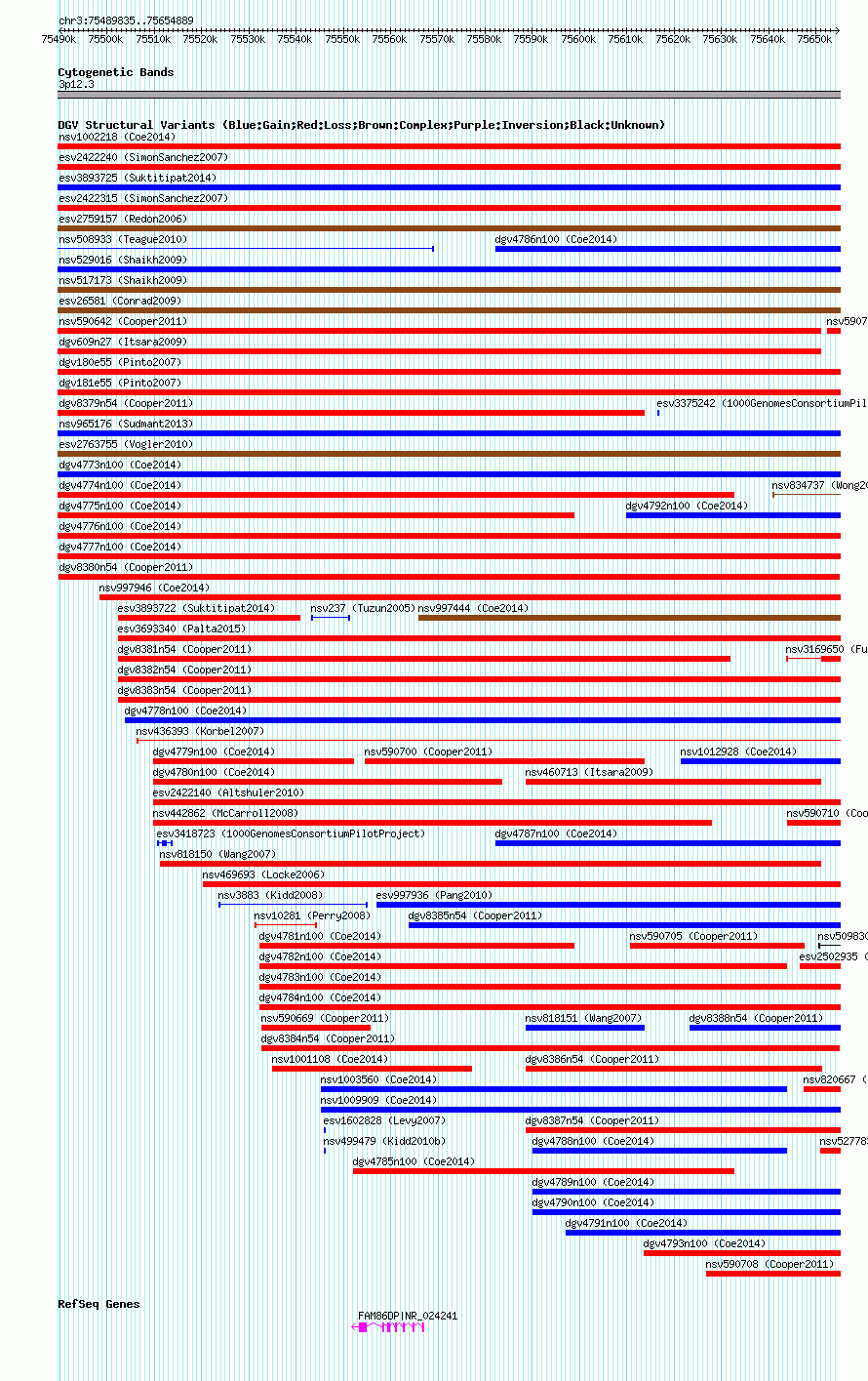 Variant DetailsVariant: dgv8380n54| Internal ID | 22776275 | | Landmark | | | Location Information | | | Cytoband | 3p12.3 | | Allele length | | Assembly | Allele length | | hg38 | 165055 | | hg19 | 165055 | | hg18 | 165055 |