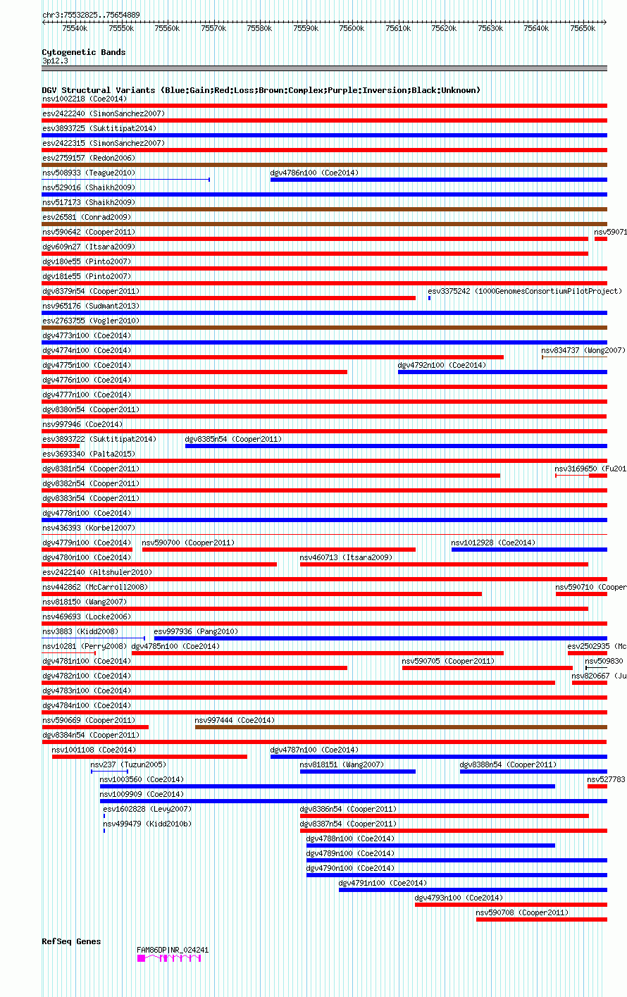 Variant DetailsVariant: dgv8384n54| Internal ID | 22776279 | | Landmark | | | Location Information | | | Cytoband | 3p12.3 | | Allele length | | Assembly | Allele length | | hg38 | 122065 | | hg19 | 122065 | | hg18 | 122065 |