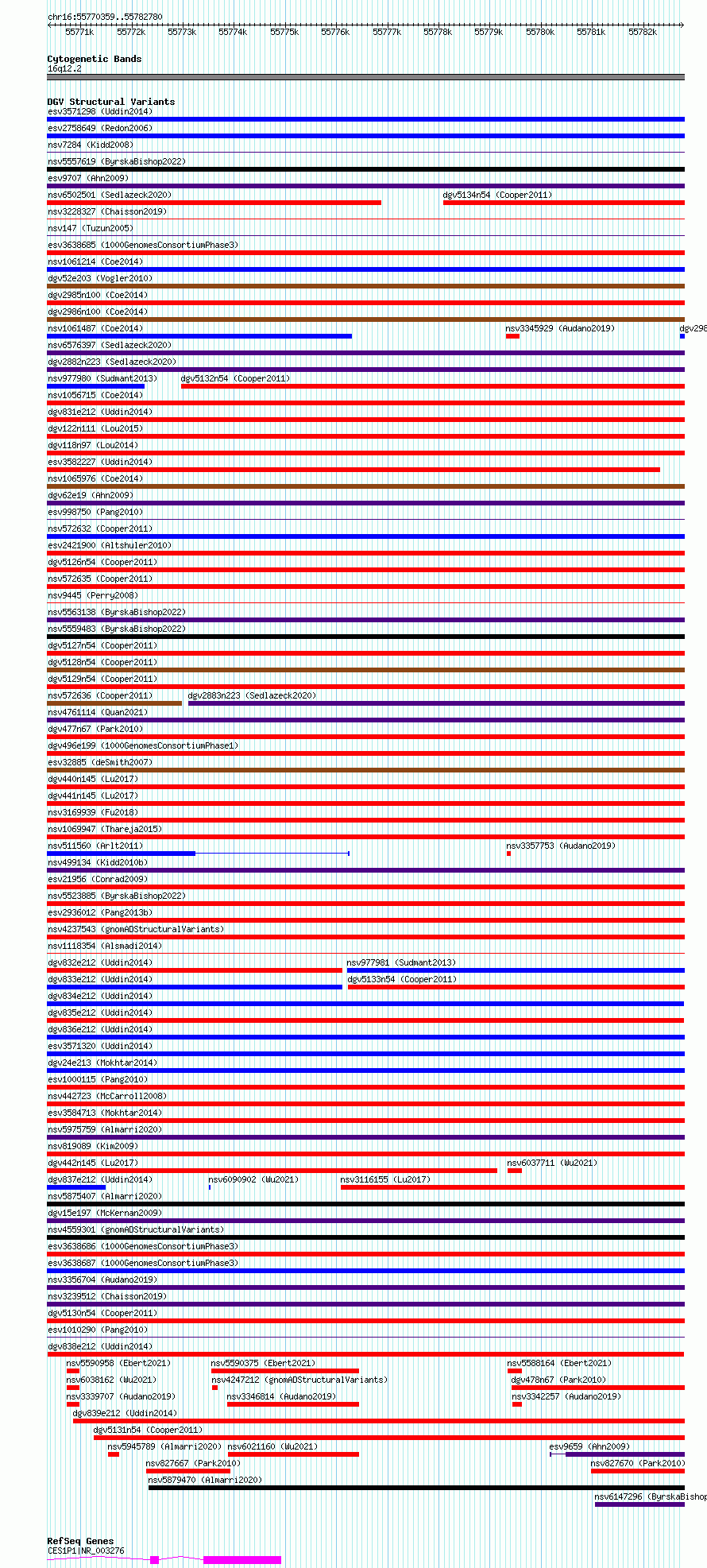 Variant DetailsVariant: dgv838e212 | Internal ID | 22783765 | | Landmark | | | Location Information | | | Cytoband | 16q12.2 | | Allele length | | Assembly | Allele length | | hg38 | 12422 | | hg19 | 12422 |