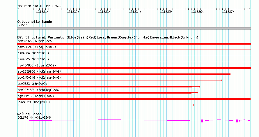 Variant DetailsVariant: dgv83n16 | Internal ID | 22765980 | | Landmark | | | Location Information | | | Cytoband | 3q22.1 | | Allele length | | Assembly | Allele length | | hg38 | 7502 | | hg19 | 7502 | | hg18 | 7502 |