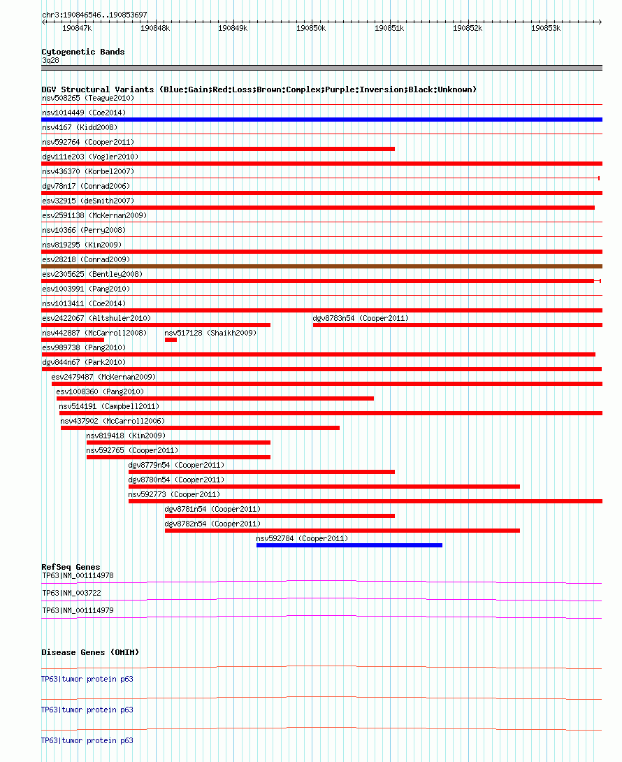 Variant DetailsVariant: dgv844n67 | Internal ID | 20147356 | | Landmark | | | Location Information | | | Cytoband | 3q28 | | Allele length | | Assembly | Allele length | | hg38 | 7152 | | hg19 | 7152 | | hg18 | 7152 |