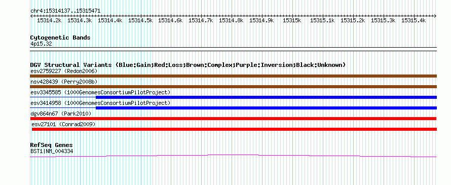 Variant DetailsVariant: dgv864n67 | Internal ID | 22781847 | | Landmark | | | Location Information | | | Cytoband | 4p15.32 | | Allele length | | Assembly | Allele length | | hg38 | 1335 | | hg19 | 1335 | | hg18 | 1335 |