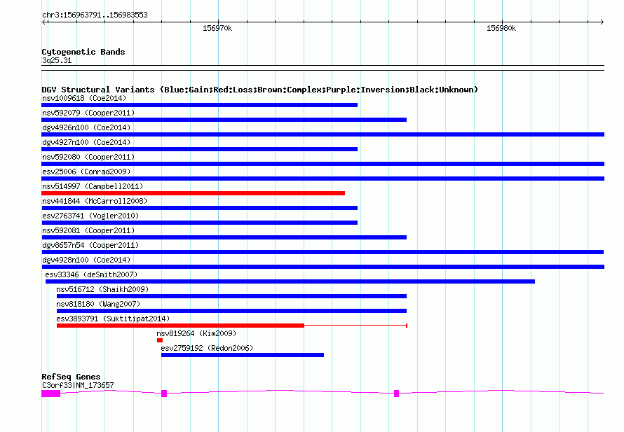 Variant DetailsVariant: dgv8657n54| Internal ID | 20142081 | | Landmark | | | Location Information | | | Cytoband | 3q25.31 | | Allele length | | Assembly | Allele length | | hg38 | 19763 | | hg19 | 19763 | | hg18 | 19763 |