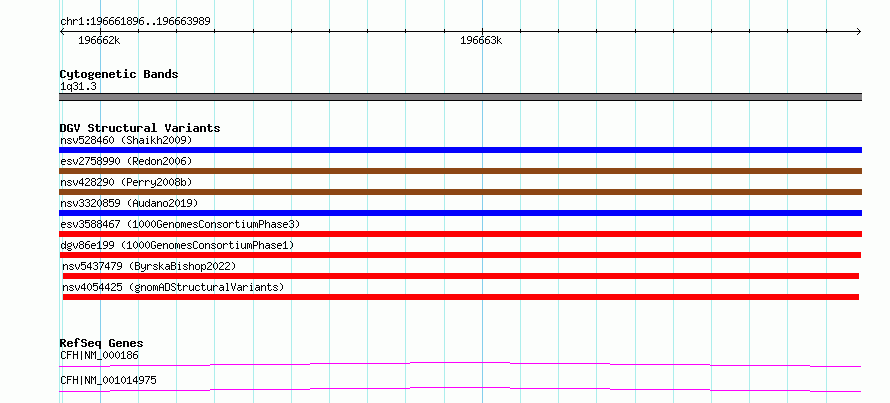 Variant DetailsVariant: dgv86e199| Internal ID | 22757859 | | Landmark | | | Location Information | | | Cytoband | 1q31.3 | | Allele length | | Assembly | Allele length | | hg38 | 2094 | | hg19 | 2094 |