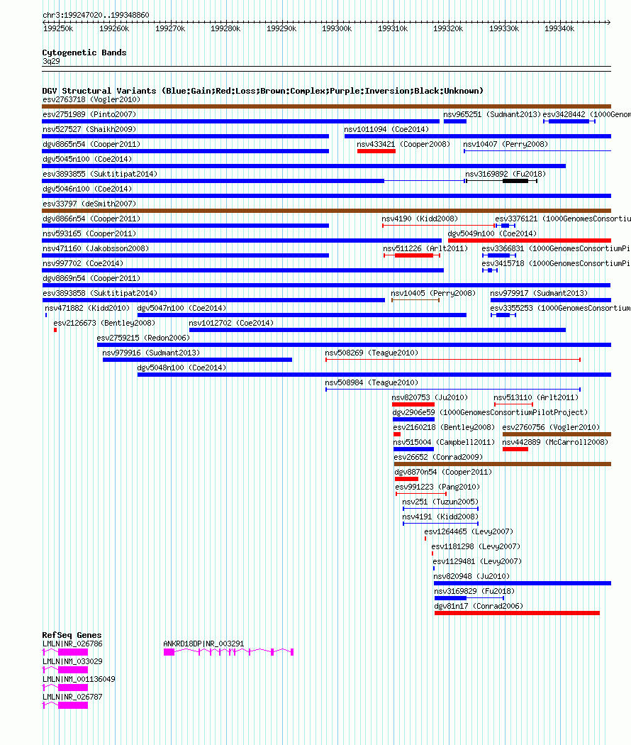 Variant DetailsVariant: dgv8869n54| Internal ID | 22776764 | | Landmark | | | Location Information | | | Cytoband | 3q29 | | Allele length | | Assembly | Allele length | | hg38 | 101841 | | hg19 | 101841 | | hg18 | 101841 |