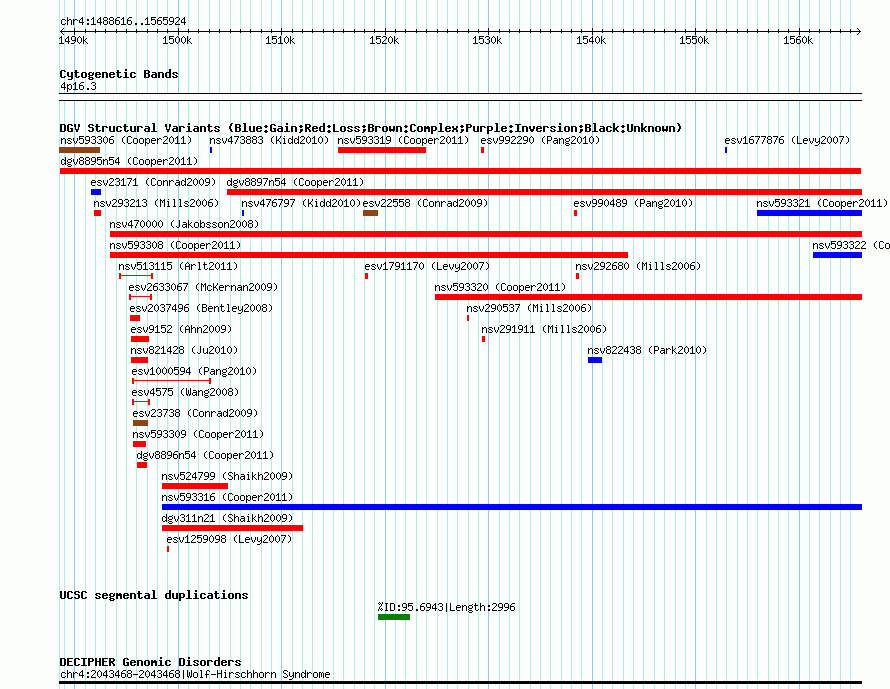 Variant DetailsVariant: dgv8895n54| Internal ID | 20142319 | | Landmark | | | Location Information | | | Cytoband | 4p16.3 | | Allele length | | Assembly | Allele length | | hg38 | 76644 | | hg19 | 76644 | | hg18 | 77309 |