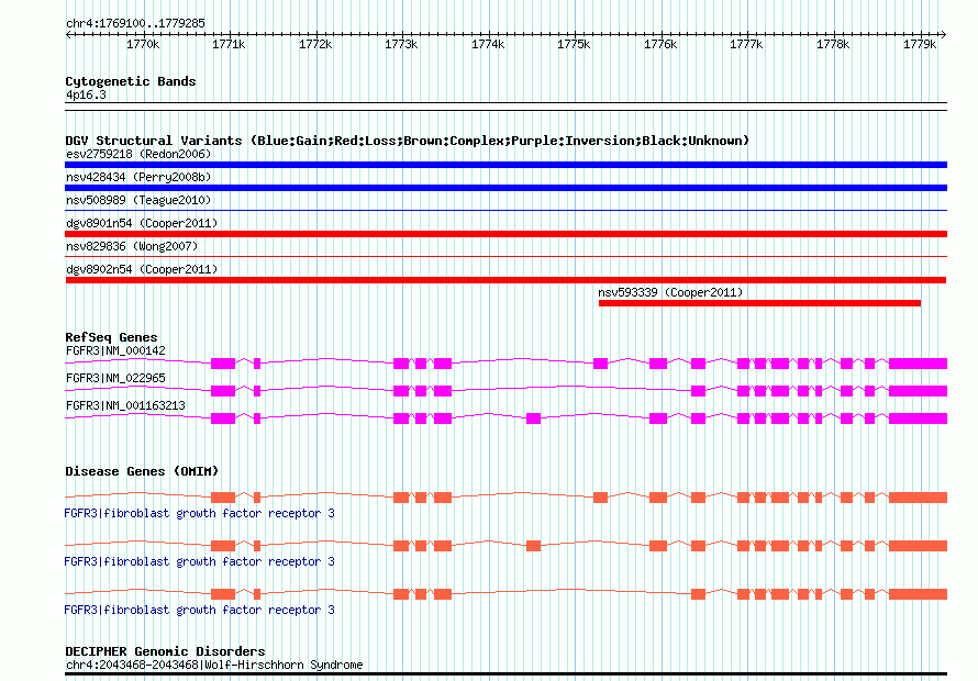 | | Variant Type | CNV loss | | Copy Number | | | Allele State | | | Allele Origin | | | Probe Count | | | Validation Flag | | | Merged Status | M | | Merged Variants | | | Supporting Variants | nsv593337, nsv593338 | | Samples | | | Known Genes | FGFR3 | | Method | SNP array | | Analysis | Illumina SNP array copy number analysis | | Platform | Not reported | | Comments | | | Reference | Cooper_et_al_2011 | | Pubmed ID | 21841781 | | Accession Number(s) | dgv8902n54