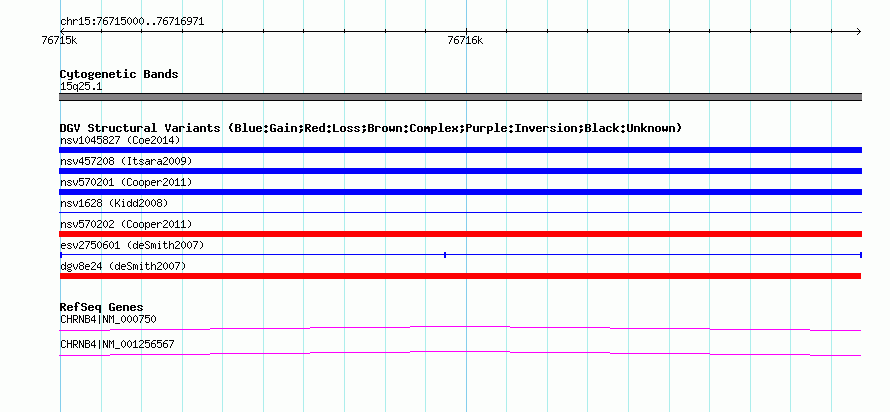 Variant DetailsVariant: dgv8e24 | Internal ID | 22760917 | | Landmark | | | Location Information | | | Cytoband | 15q25.1 | | Allele length | | Assembly | Allele length | | hg38 | 1972 | | hg19 | 1972 | | hg18 | 1972 | | hg17 | 1972 |