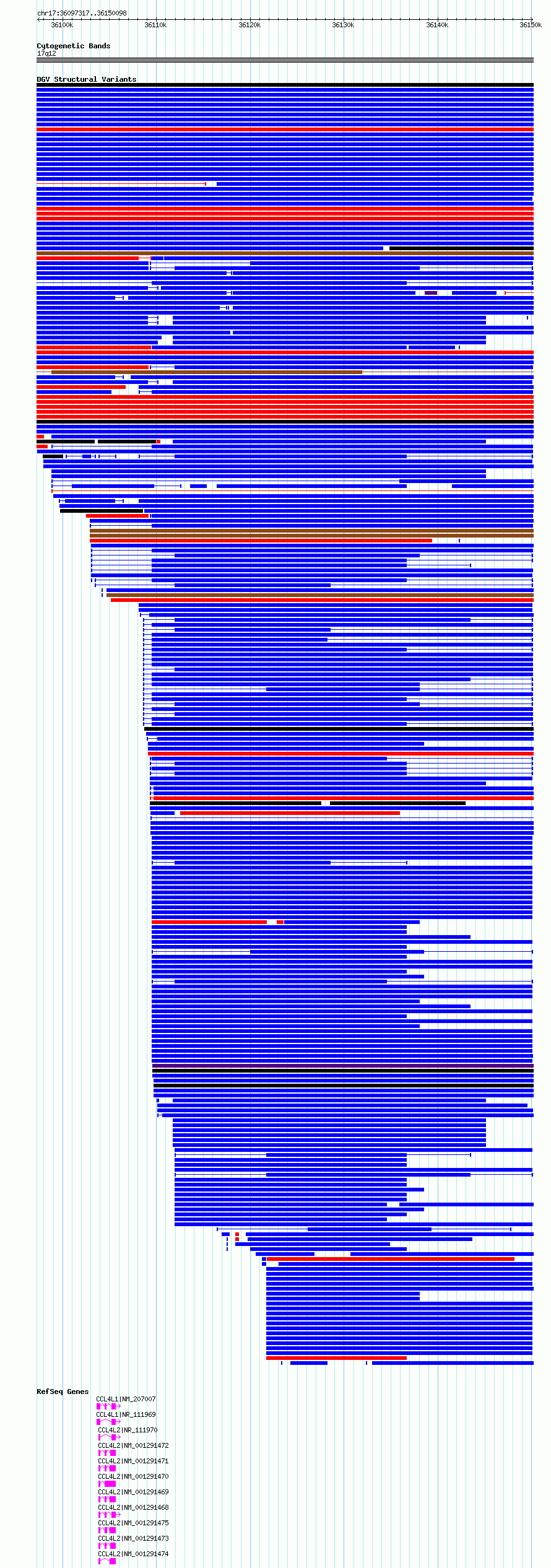 Variant DetailsVariant: dgv908e212 | Internal ID | 22783835 | | Landmark | | | Location Information | | | Cytoband | 17q12 | | Allele length | | Assembly | Allele length | | hg38 | 52782 | | hg19 | 52770 |