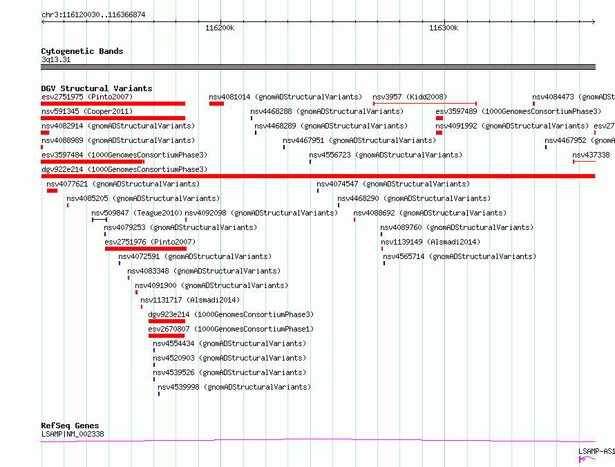 Variant DetailsVariant: dgv922e214| Internal ID | 20122345 | | Landmark | | | Location Information | | | Cytoband | 3q13.31 | | Allele length | | Assembly | Allele length | | hg38 | 246845 | | hg19 | 246845 |