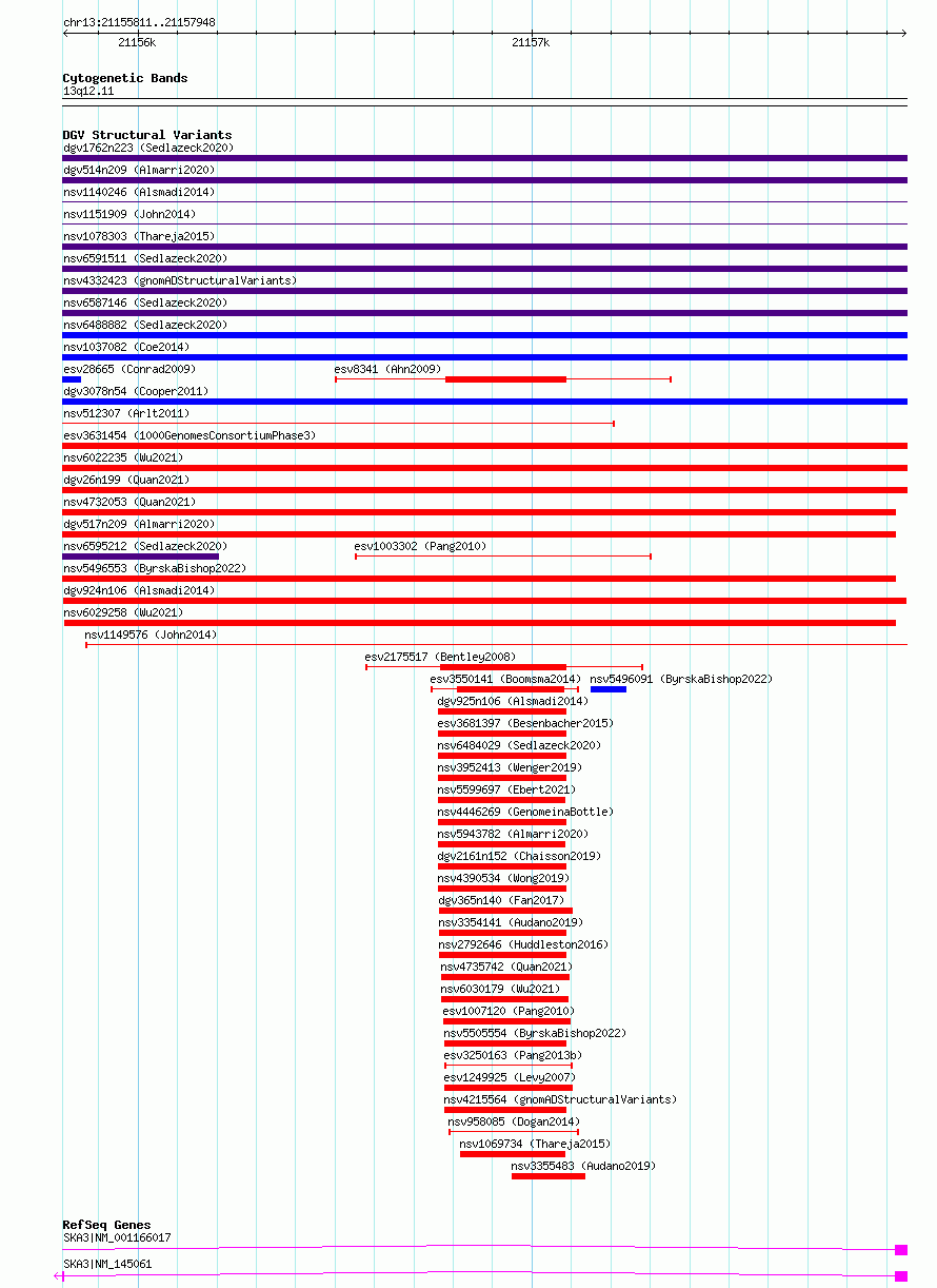 Variant DetailsVariant: dgv924n106| Internal ID | 22794752 | | Landmark | | | Location Information | | | Cytoband | 13q12.11 | | Allele length | | Assembly | Allele length | | hg38 | 2138 | | hg19 | 2138 |