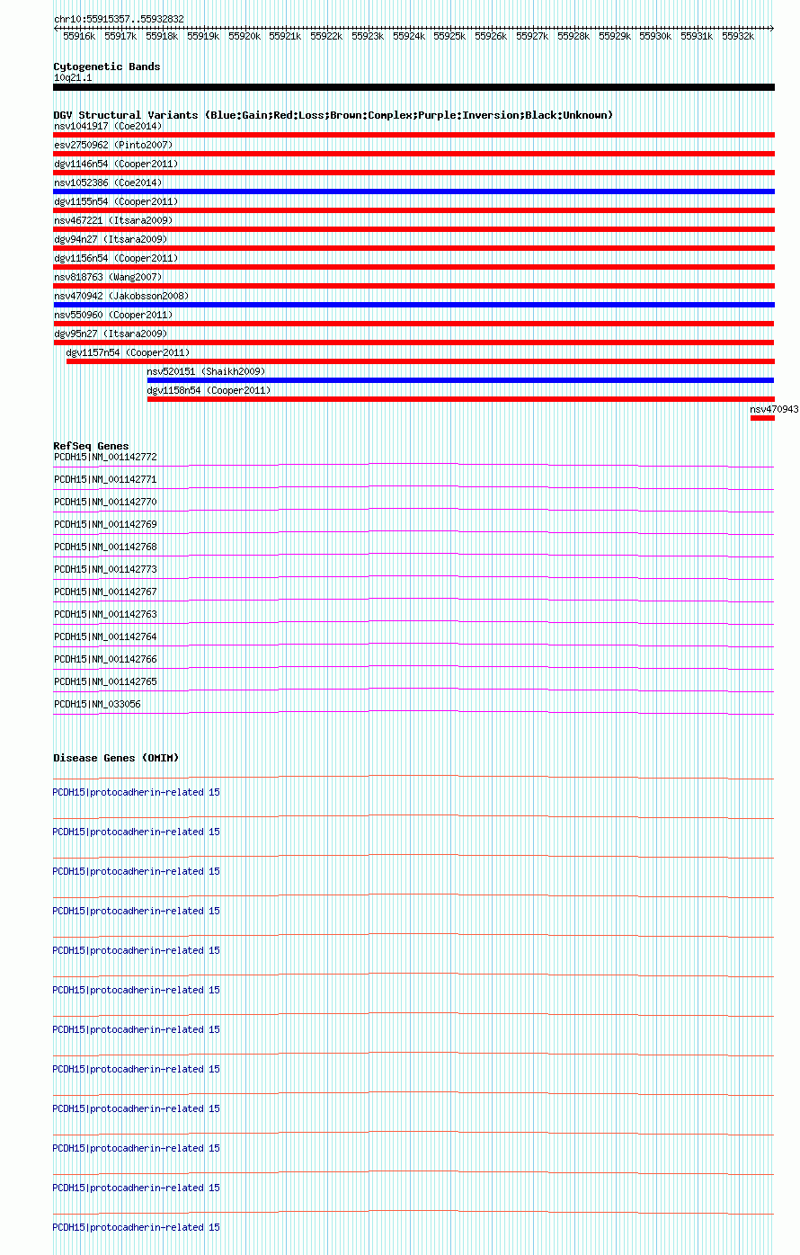 | | Variant Type | CNV loss | | Copy Number | | | Allele State | | | Allele Origin | | | Probe Count | | | Validation Flag | | | Merged Status | M | | Merged Variants | | | Supporting Variants | nsv467223, nsv467222 | | Samples | HGDP00634, HGDP00941 | | Known Genes | PCDH15 | | Method | SNP array | | Analysis | An HMM examining LogR Ratio and B-allele Frequency was used to classify SNP array data into regions of copy-number 0-3. A combination of manual and automated curation was used on the resulting output to reduce false positives. | | Platform | Not reported | | Comments | | | Reference | Itsara_et_al_2009 | | Pubmed ID | 19166990 | | Accession Number(s) | dgv95n27