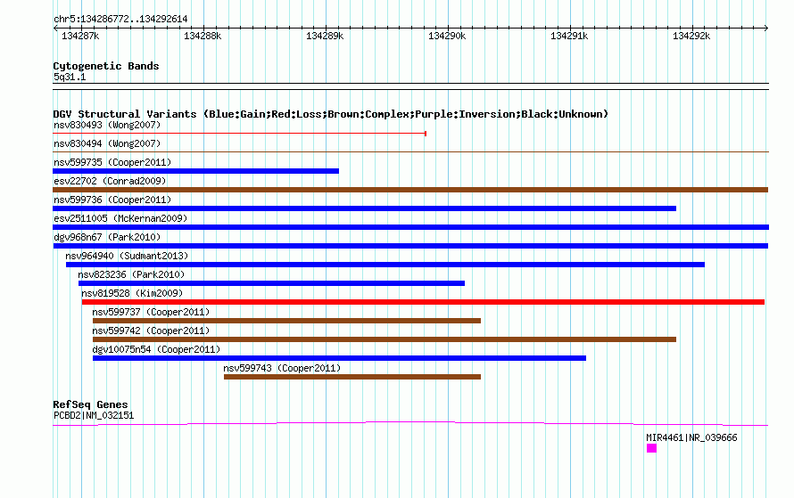 Variant DetailsVariant: dgv968n67 | Internal ID | 22781951 | | Landmark | | | Location Information | | | Cytoband | 5q31.1 | | Allele length | | Assembly | Allele length | | hg38 | 5843 | | hg19 | 5843 | | hg18 | 5843 |