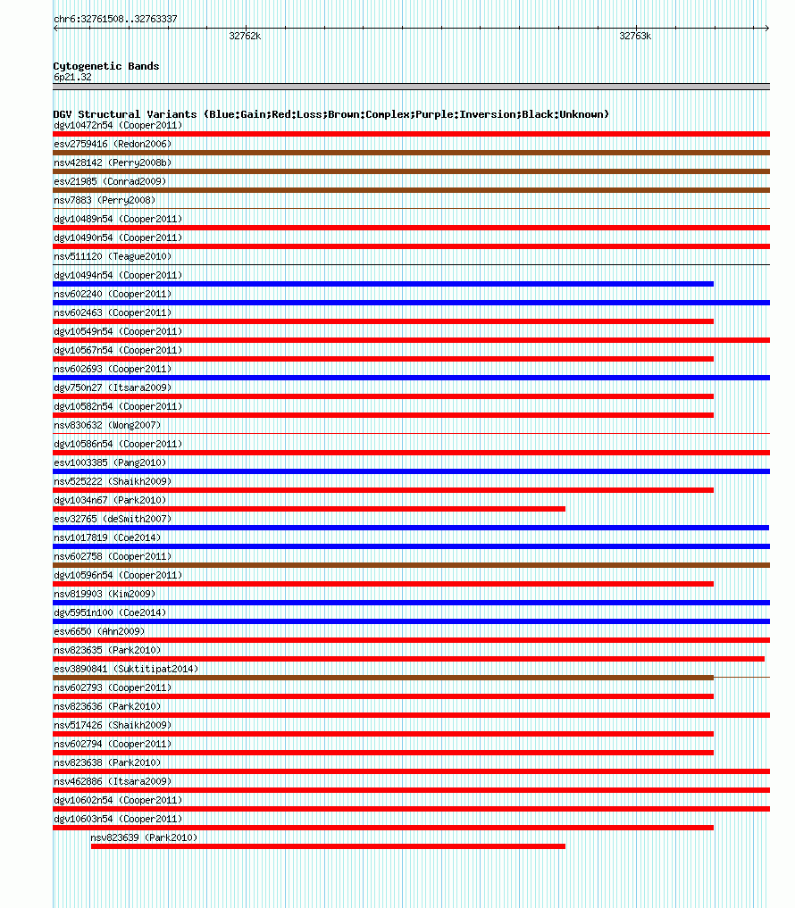 Outerchr6:32761508..32763337hg17UCSC Ensembl