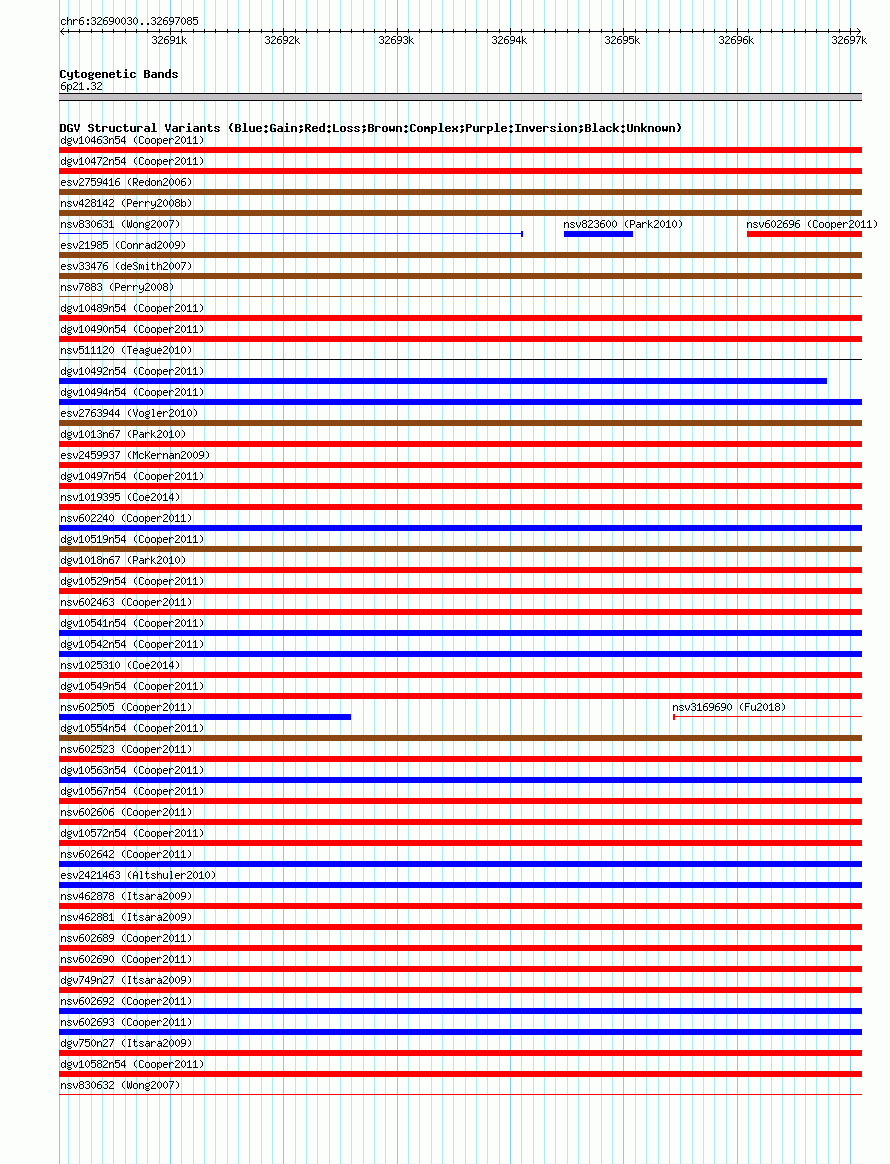 Outerchr6:32690030..32697085hg17UCSC Ensembl