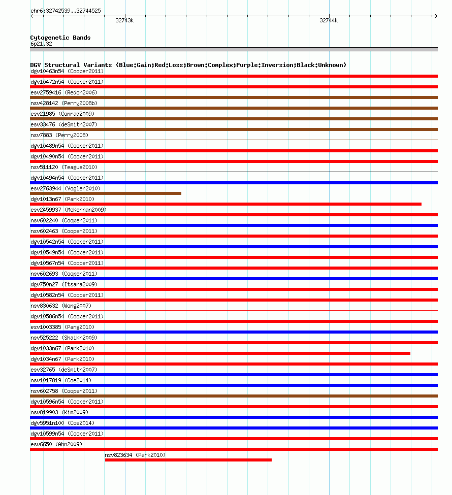 Outerchr6:32742539..32744525hg17UCSC Ensembl
