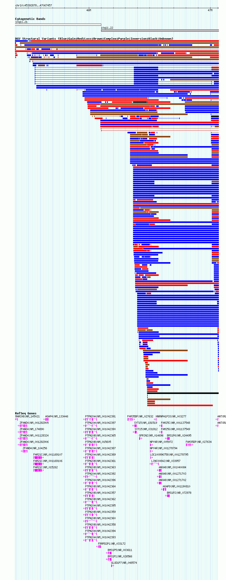Variant DetailsVariant: essv18463 | Internal ID | 9956666 | | Landmark | | | Location Information | | | Cytoband | 10q11.21 | | Allele length | | Assembly | Allele length | | hg38 | 163497 | | hg19 | 1524580 | | hg18 | 1674580 | | hg17 | 1674580 |