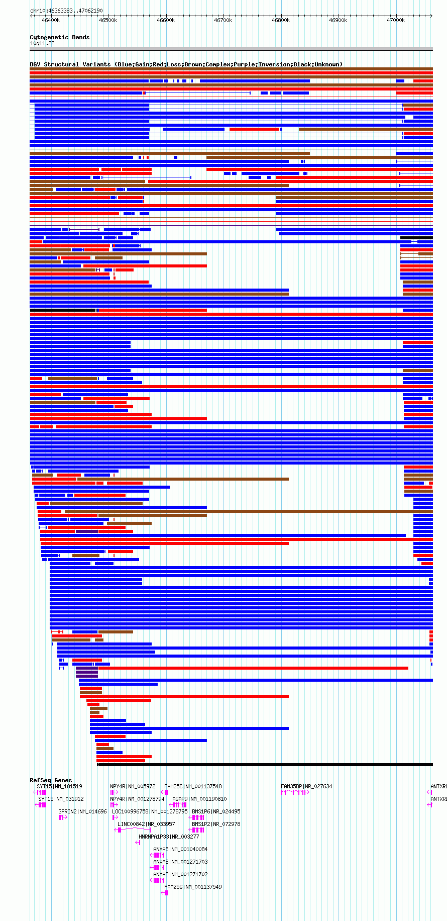 Variant DetailsVariant: essv19042 | Internal ID | 9954398 | | Landmark | | | Location Information | | | Cytoband | 10q11.22 | | Allele length | | Assembly | Allele length | | hg38 | 21033 | | hg19 | 648808 | | hg18 | 698808 | | hg17 | 698808 |