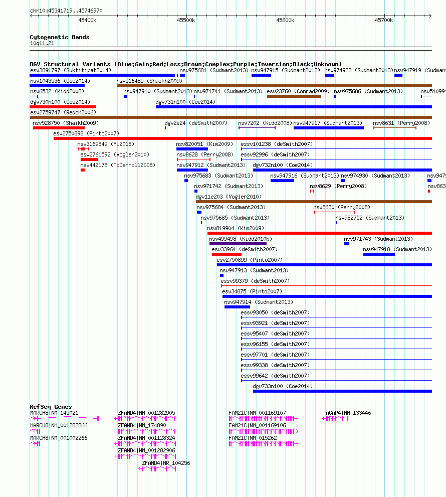 | Known Genes | AGAP4, FAM21C, MARCH8, ZFAND4 |