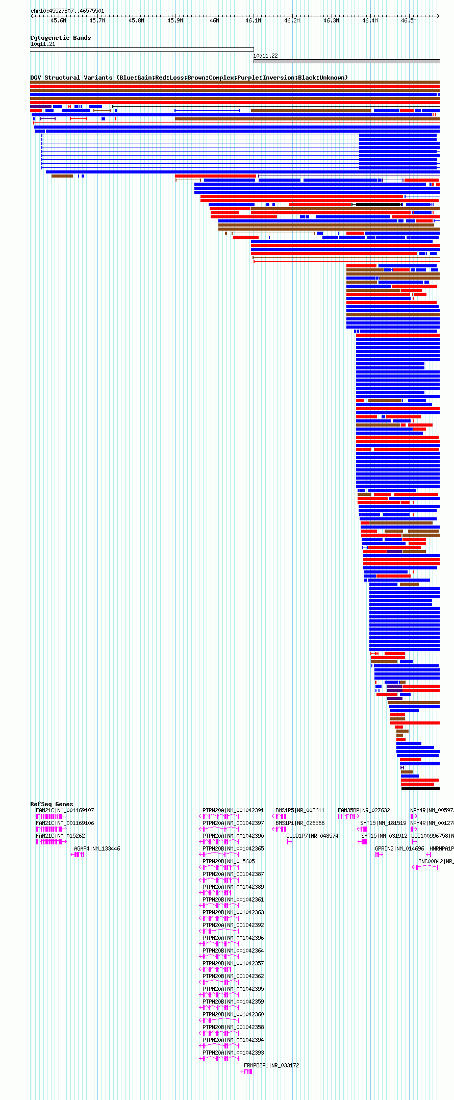 Variant DetailsVariant: essv20850 | Internal ID | 9956474 | | Landmark | | | Location Information | | | Cytoband | 10q11.21 | | Allele length | | Assembly | Allele length | | hg19 | 947695 | | hg18 | 1047695 | | hg17 | 1047695 |