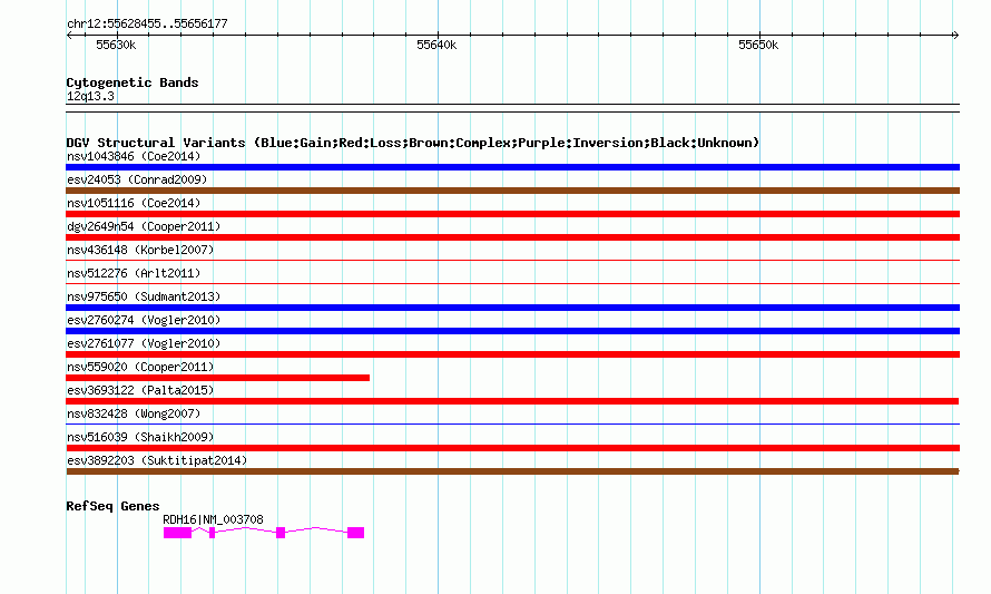 Variant DetailsVariant: essv25778412| Internal ID | 19170864 | | Landmark | | | Location Information | | | Cytoband | 12q13.3 | | Allele length | | Assembly | Allele length | | hg38 | 27723 | | hg19 | 27723 | | hg18 | 27723 |