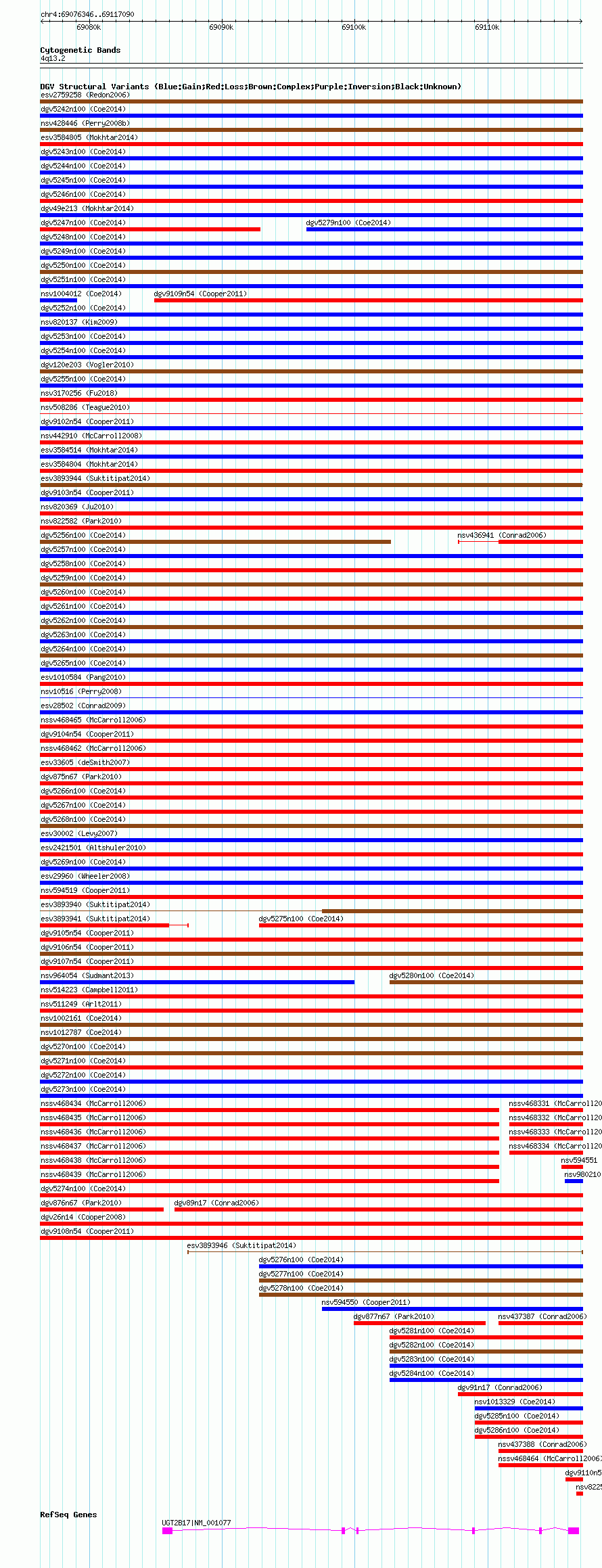 Variant DetailsVariant: essv25780022| Internal ID | 19167464 | | Landmark | | | Location Information | | | Cytoband | 4q13.2 | | Allele length | | Assembly | Allele length | | hg38 | 40745 | | hg19 | 40745 | | hg18 | 40745 |