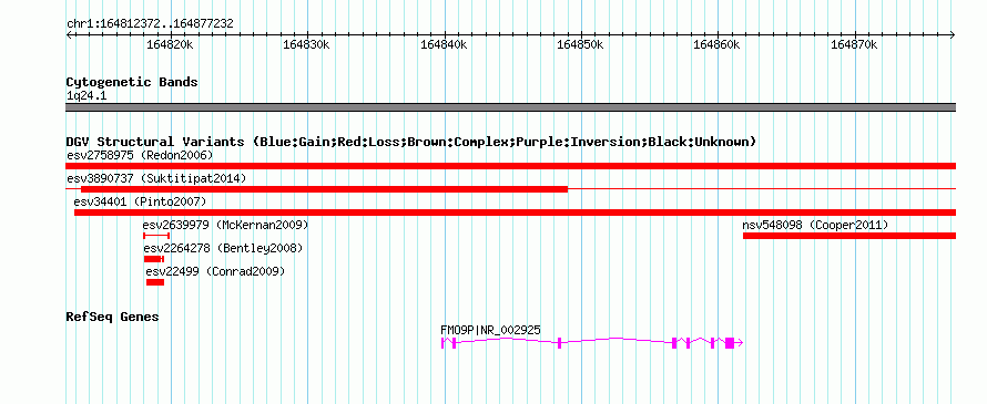 Variant DetailsVariant: essv25780896| Internal ID | 19171445 | | Landmark | | | Location Information | | | Cytoband | 1q24.1 | | Allele length | | Assembly | Allele length | | hg38 | 64861 | | hg19 | 64861 | | hg18 | 64861 |