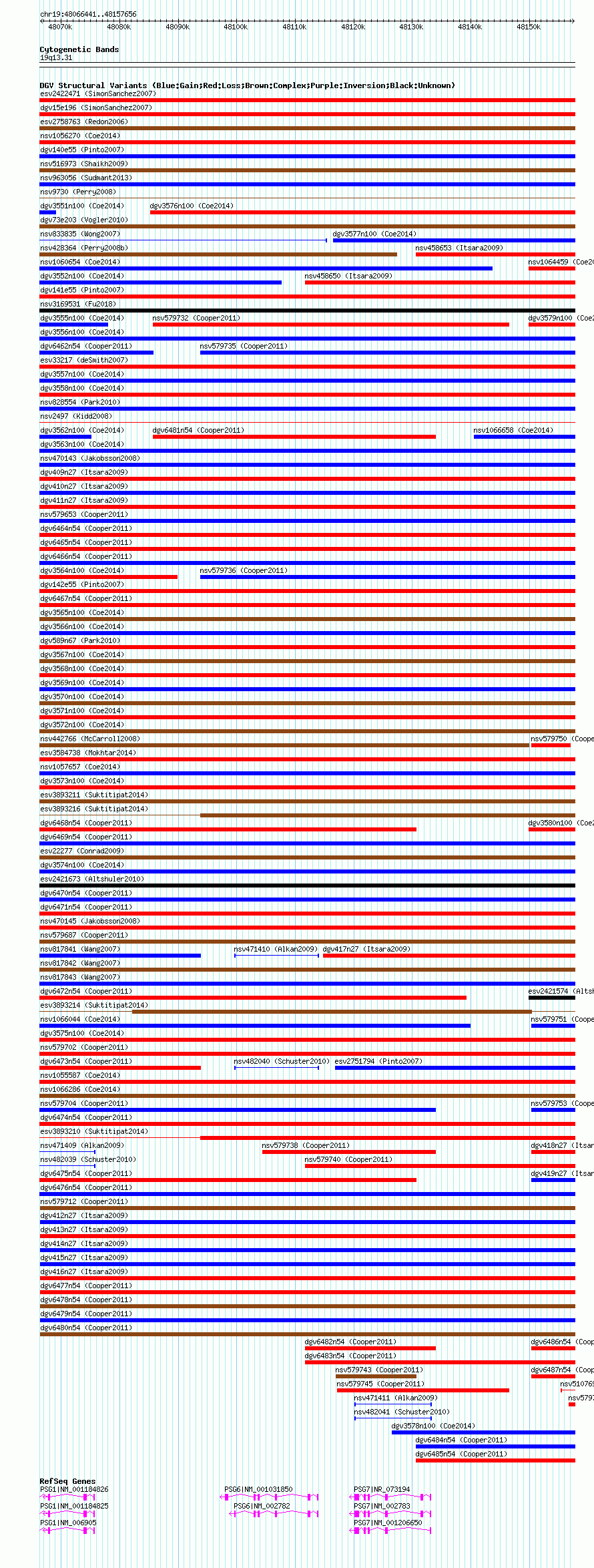 Variant DetailsVariant: essv25781675| Internal ID | 19172913 | | Landmark | | | Location Information | | | Cytoband | 19q13.2 | | Allele length | | Assembly | Allele length | | hg38 | 91216 | | hg19 | 91216 | | hg18 | 91216 |