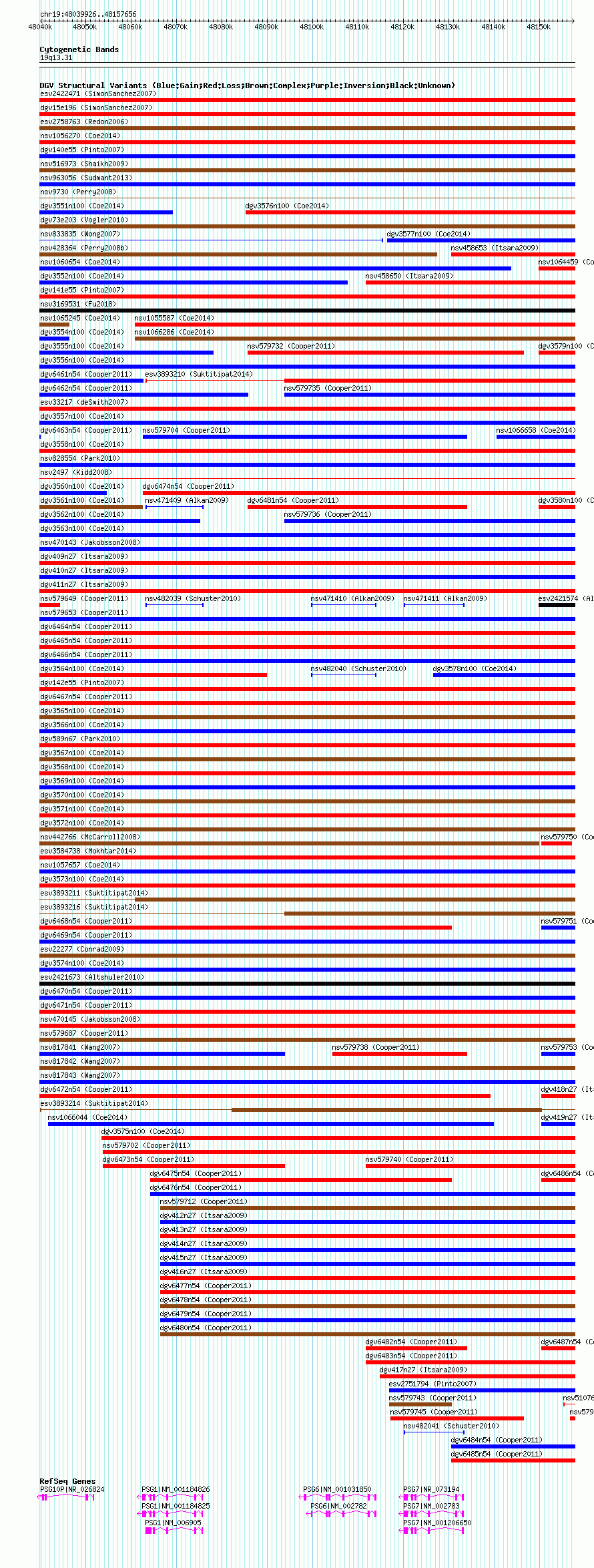 Variant DetailsVariant: essv25782603| Internal ID | 19182134 | | Landmark | | | Location Information | | | Cytoband | 19q13.2 | | Allele length | | Assembly | Allele length | | hg38 | 117731 | | hg19 | 117731 | | hg18 | 117731 |