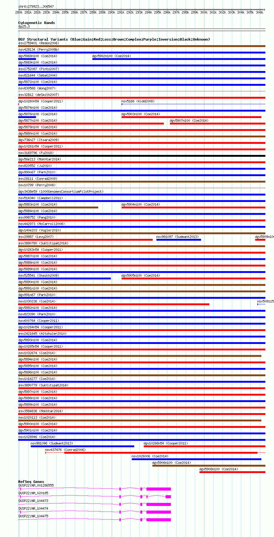 Variant DetailsVariant: essv25783109| Internal ID | 19160106 | | Landmark | | | Location Information | | | Cytoband | 6p25.3 | | Allele length | | Assembly | Allele length | | hg38 | 26625 | | hg19 | 26625 | | hg18 | 26625 |