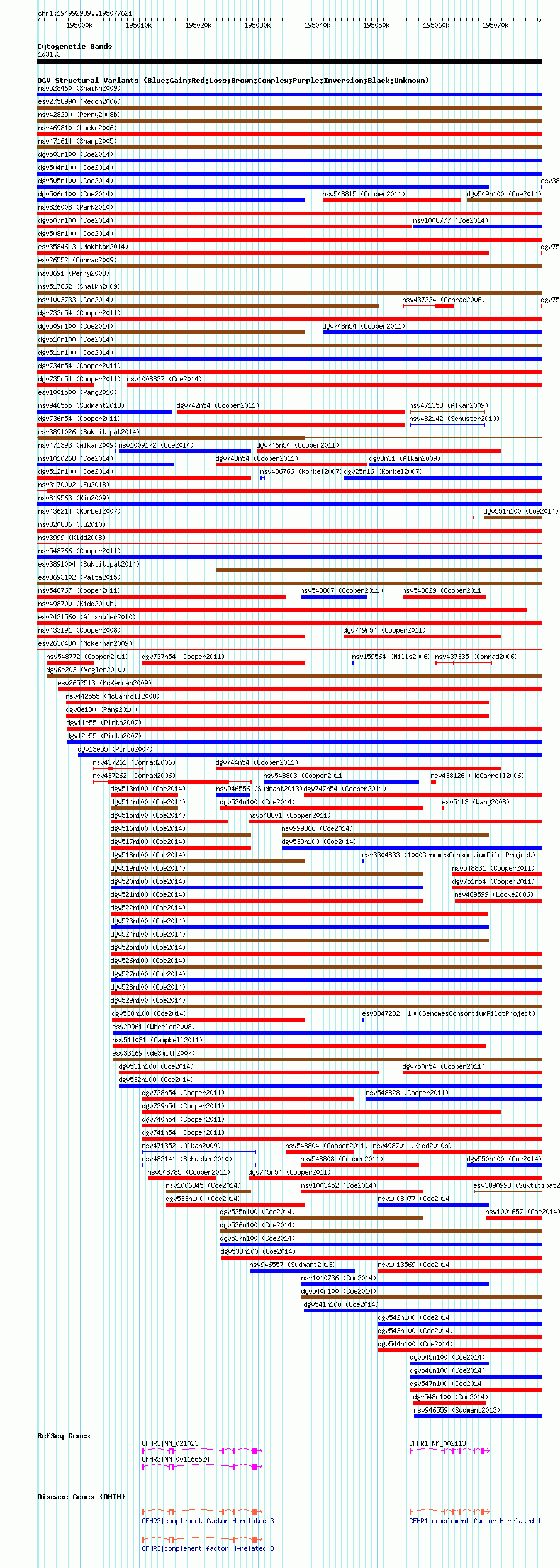 | | Variant Type | CNV loss | | Copy Number | 1 | | Allele State | | | Allele Origin | | | Probe Count | | | Validation Flag | | | Merged Status | S | | Merged Variants | esv3891026 | | Supporting Variants | | | Samples | | | Known Genes | CFHR1, CFHR3 | | Method | SNP array | | Analysis | | | Platform | Illumina HumanHap 610 | | Comments | Number of probes=8 | | Reference | Suktitipat_et_al_2014 | | Pubmed ID | 25118596 | | Accession Number(s) | essv25785574