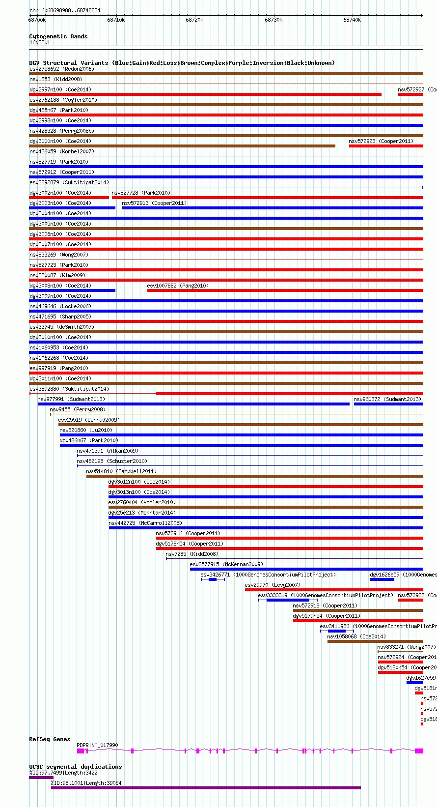 Variant DetailsVariant: essv25786699| Internal ID | 18821013 | | Landmark | | | Location Information | | | Cytoband | 16q22.1 | | Allele length | | Assembly | Allele length | | hg38 | 49847 | | hg19 | 49847 | | hg18 | 49847 |