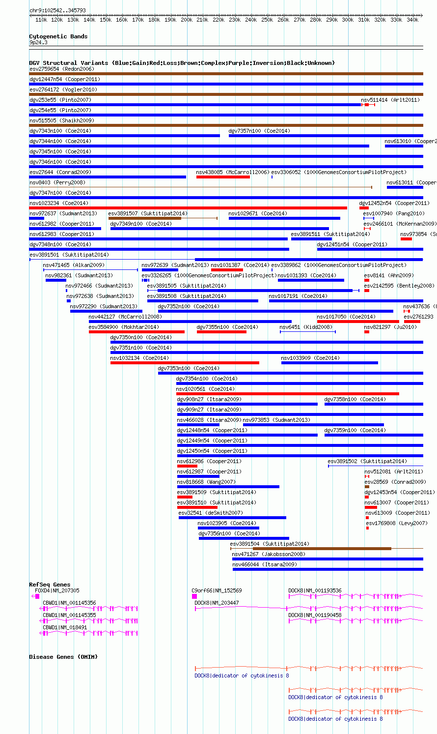 | Known Genes | C9orf66, CBWD1, DOCK8, FOXD4 |