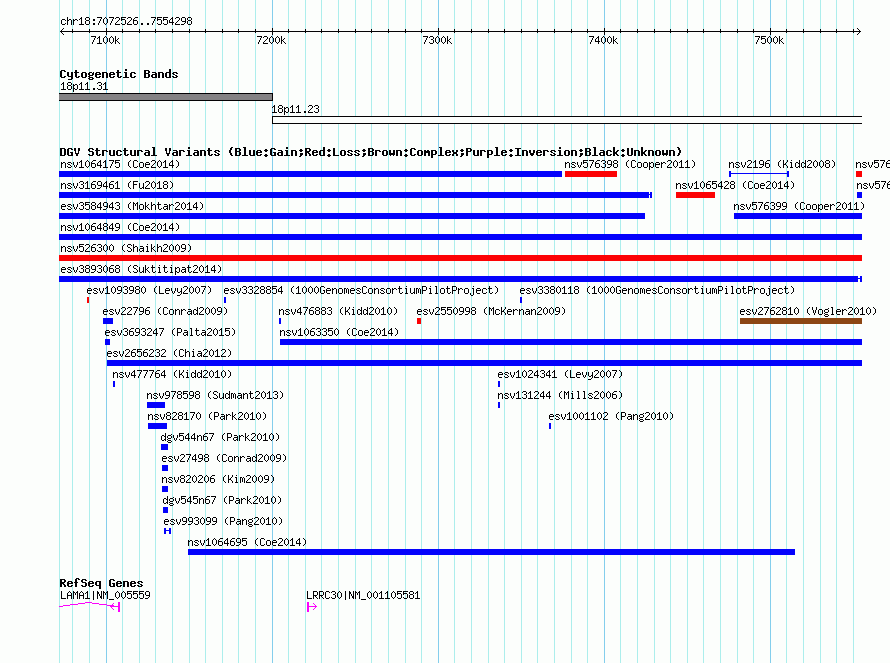 Variant DetailsVariant: essv25788282| Internal ID | 19168139 | | Landmark | | | Location Information | | | Cytoband | 18p11.23 | | Allele length | | Assembly | Allele length | | hg38 | 481774 | | hg19 | 481773 | | hg18 | 481773 |