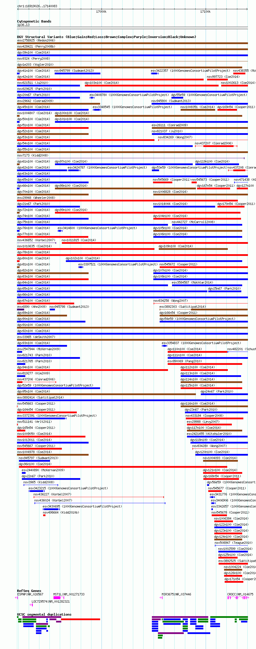 Variant DetailsVariant: essv25788485| Internal ID | 18829429 | | Landmark | | | Location Information | | | Cytoband | 1p36.13 | | Allele length | | Assembly | Allele length | | hg38 | 221058 | | hg19 | 221058 | | hg18 | 221058 |