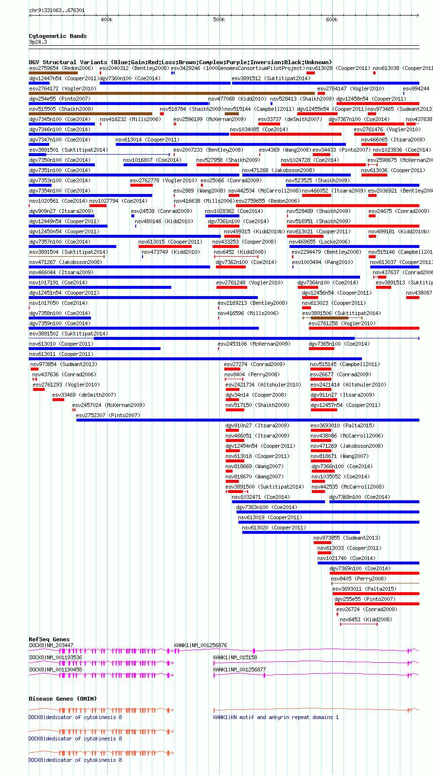 Variant DetailsVariant: essv25788841| Internal ID | 19178905 | | Landmark | | | Location Information | | | Cytoband | 9p24.3 | | Allele length | | Assembly | Allele length | | hg38 | 345239 | | hg19 | 345239 | | hg18 | 345239 |