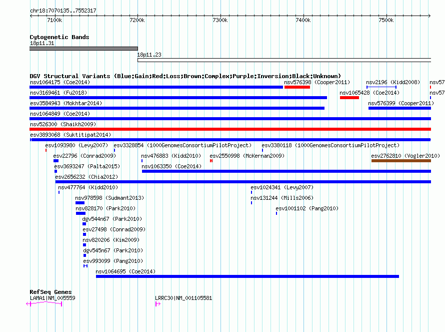 Variant DetailsVariant: essv25788889| Internal ID | 19159579 | | Landmark | | | Location Information | | | Cytoband | 18p11.23 | | Allele length | | Assembly | Allele length | | hg38 | 482184 | | hg19 | 482183 | | hg18 | 482183 |