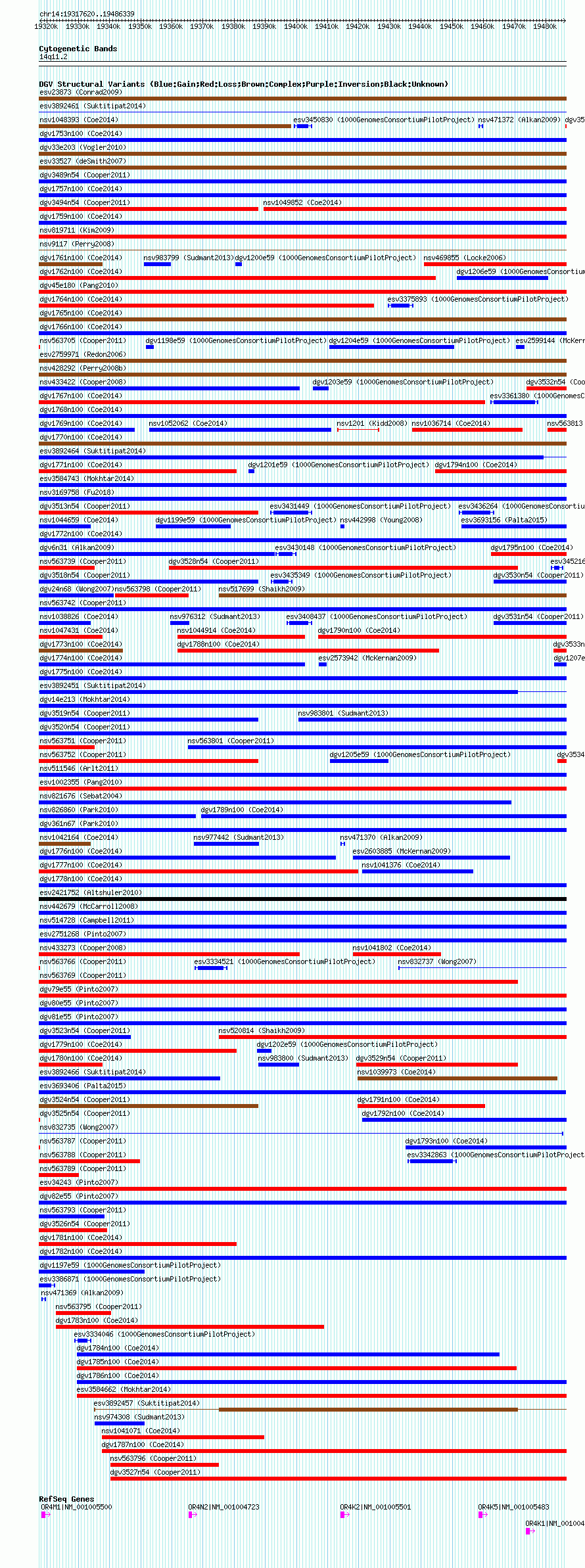 Variant DetailsVariant: essv25789437| Internal ID | 19169185 | | Landmark | | | Location Information | | | Cytoband | 14q11.2 | | Allele length | | Assembly | Allele length | | hg38 | 168720 | | hg19 | 168720 | | hg18 | 168720 |