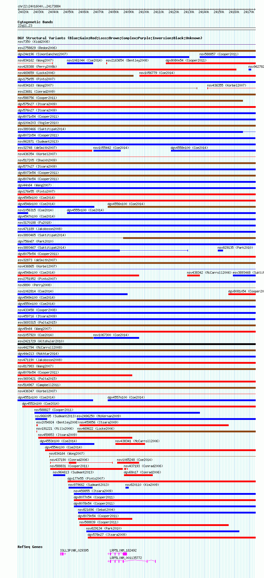 Variant DetailsVariant: essv25789846| Internal ID | 19168612 | | Landmark | | | Location Information | | | Cytoband | 22q11.23 | | Allele length | | Assembly | Allele length | | hg38 | 157845 | | hg19 | 157845 | | hg18 | 157845 |