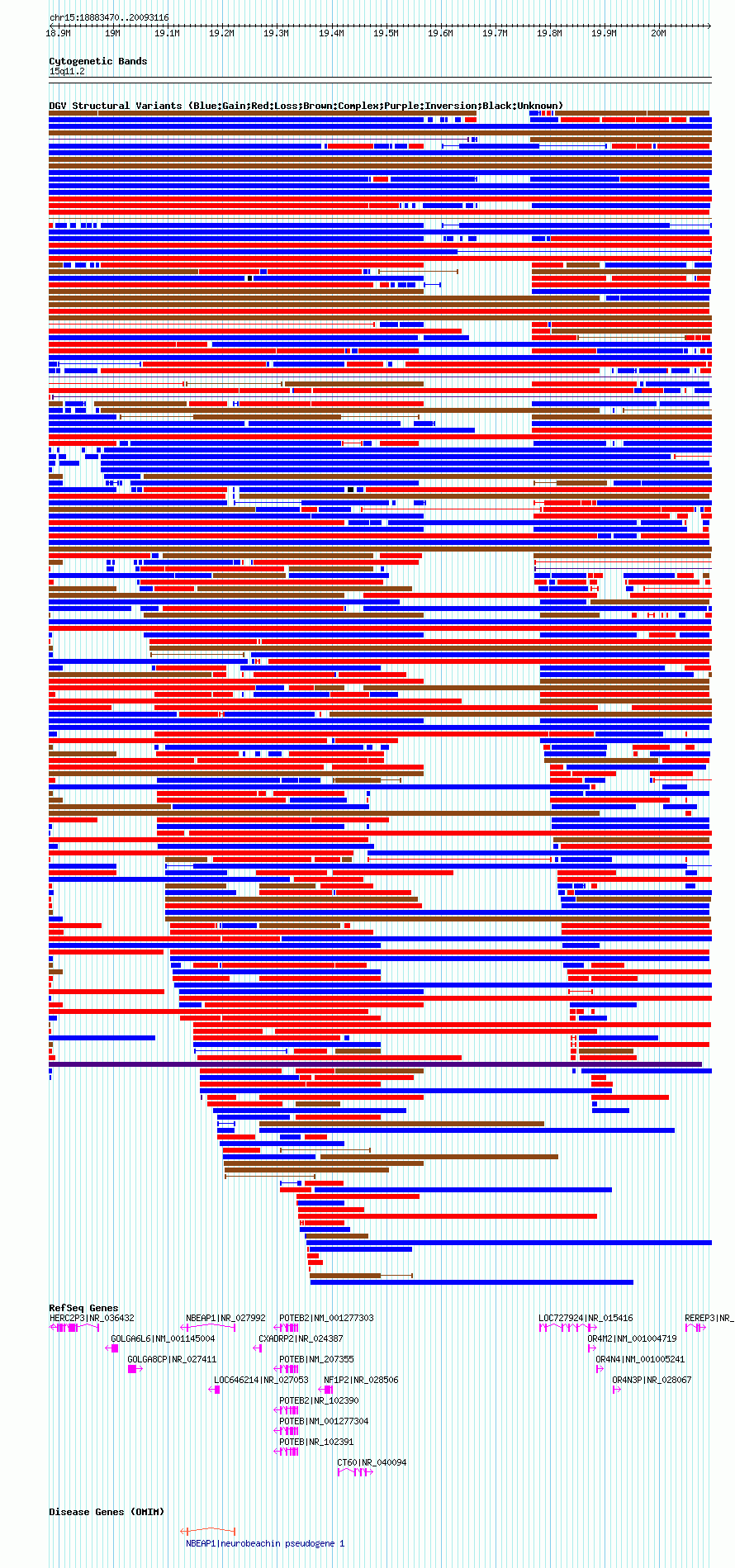 Variant DetailsVariant: essv25790101| Internal ID | 19182513 | | Landmark | | | Location Information | | | Cytoband | 15q11.1 | | Allele length | | Assembly | Allele length | | hg38 | 1885599 | | hg19 | 1968297 | | hg18 | 1209647 |